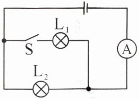 1. 首先分析电路图,当开关$S$闭合时,灯泡$L_1$和$L_2$并联,电流表测量的是干路电流,即$I = 0.9A$;当开关$S$断开时,电路中只有$L_2$接入电路,此时电流表测量的是通过$L_2$的电流,即$I_2 = 0.5A$。