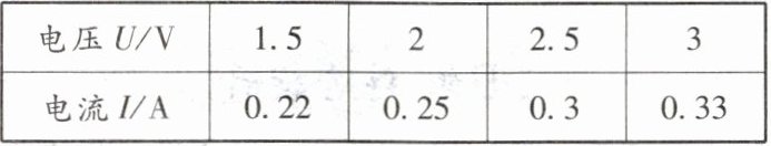 | 电压U/V | 1.5 | 2 | 2.5 | 3 |