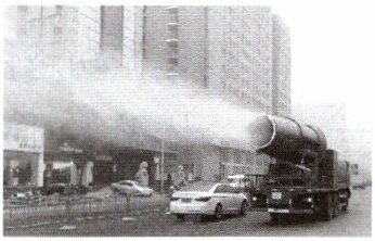 7. “共建卫生城市,构建美好家园”,如图所示是“雾炮车”喷洒水雾以减少扬尘的情景。某次喷洒完后,该车在$4×10^3$ N的牵引力作用下,匀速通过200 m的平直道路用时20 s。求: