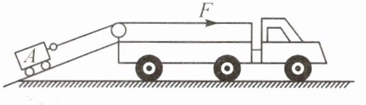 10. 为规范停车秩序,交警对违停车辆进行拖移,工作原理如图所示,当钢绳对车辆施加沿斜面的拉力$F为5×10^{3}N$时,在100s内可将小车$A$从斜面底端匀速拉至斜面顶端,已知小车$A$的质量为1.5t,斜面高为1m、长为5m(不计车长、钢绳重、钢绳与滑轮间的摩擦和滑轮与轴间的摩擦)。求:($g$取10N/kg)