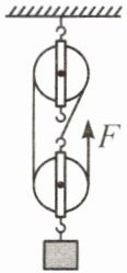 9. 为了提升物体,用如图所示的滑轮组把重600N的物体匀速提高2m,拉力$F$为250N。求: