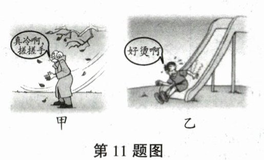 11.如图甲、乙所示,漫画中老人和小朋友的感觉不同,但从物理学角度看,两幅图片都说明