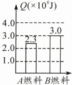 解:由图可知,A燃料完全燃烧放出的热量$Q_{A}=2.3×10^{6}J$,质量$m_{A}=50g=0.05kg$;B燃料完全燃烧放出的热量$Q_{B}=3.0×10^{6}J$,质量$m_{B}=100g=0.1kg$。