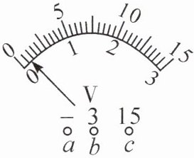 在用$0\sim 15V$量程进行试触时,发现指针只是偏转了一点,说明电压表量程选择过大,在这种情况下,为了更准确地测量电压,应该选择较小的量程,即$0\sim 3V$量程,同时,在更换量程之前,应该先断开开关,以确保操作的安全性,根据图中所示,$0\sim 3V$量程对应的接线柱是b,因此,下一步的操作应该是断开开关,接入b接线柱,闭合开关后读数。