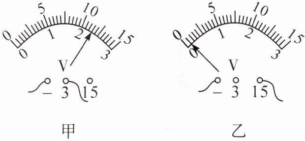 V;若试触时出现如图乙所示的情况,则原因是电压表正负接线柱接反了