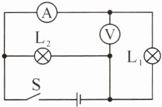 例2 如图所示,两个不同规格的小灯泡连接在一起,开关S闭合后,$L_{2}比L_{1}$亮,电流表的示数和电压表的示数分别是0.15 A和3 V,则下列说法正确的是(