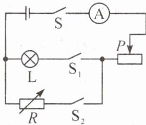 ,灯泡正常发光。(2)只闭合开关S和$S_{2}$,变阻器滑片位置