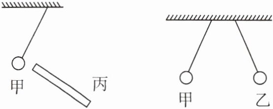 1. (HY 九上 P47“活动2”改编)甲、乙是用绝缘丝吊着的两个轻质小球,丙是丝绸摩擦过的玻璃棒,相互靠近静止后如图所示。下列说法正确的是(
