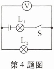 4. (HY 九上 P72“自我评价与作业”第4题改编)如图所示的电路中,当开关S闭合时,电压表测的是(