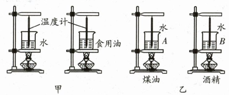 相等的水和食用油加热。 (3)图甲的装置中,用相同酒精灯给两种液体加热相同时间,其目的是保证两种液体