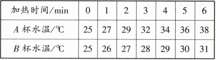 | B杯水温/℃ | 25| 26| 27| 28| 29| 30| 31|