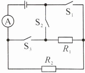当$S_{2}$闭合,$S_{1}$、$S_{3}$断开时,$R_{1}$与$R_{2}$串联,电流表测电路中的电流。