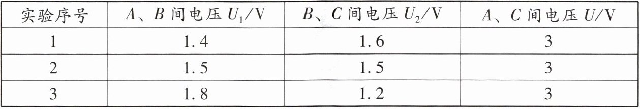 | 实验序号 | A、B间电压$U_1$/V | B、C间电压$U_2$/V | A、C间电压$U$/V |
