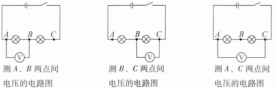 (1)分别把电压表并联在如图所示的电路中A、B两点,B、C两点,A、C两点间测量电压,看看它们之间有什么关系。
