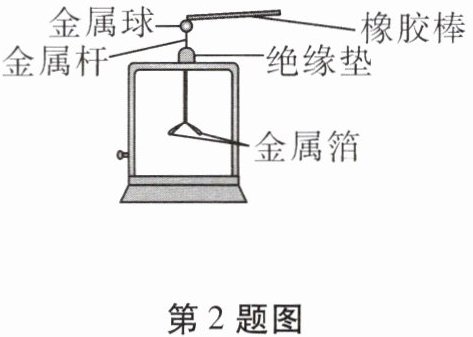 2. (2022·广东节选)与毛皮摩擦过的橡胶棒因得到电子而带