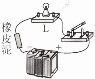 4. 如图所示,将一块柱状橡皮泥和灯泡串联接入电路,闭合开关,灯泡发光,说明该橡皮泥属于