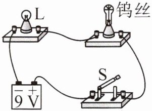 3. 如图所示钨丝与小灯泡L连接,闭合开关S,小灯泡L发光,钨丝不发光,用酒精灯给钨丝加热,小灯泡L逐渐变暗直至熄灭,由实验可知(