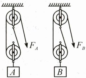 ②拉$A$时绳子自由端的拉力大于拉$B$时绳子自由端的拉力,正确;