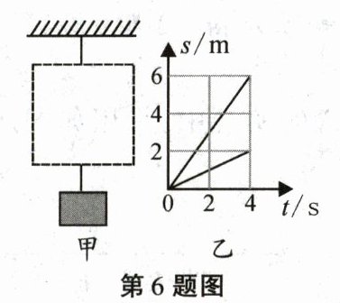 6.如图甲所示,虚线框内是由两个相同的滑轮安装成的滑轮组。利用该滑轮组提升质量为27 kg的物体所用的拉力为100 N。物体和绳子自由端的运动情况如图乙所示,不计绳重和摩擦,则(g取10 N/kg)(