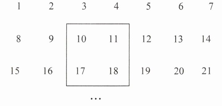 (1)如图,用一个正方形框任意框住 $4$ 个数。如果记左上角的数为 $x$,则另三个数用含 $x$ 的式子表示,从小到大依次是