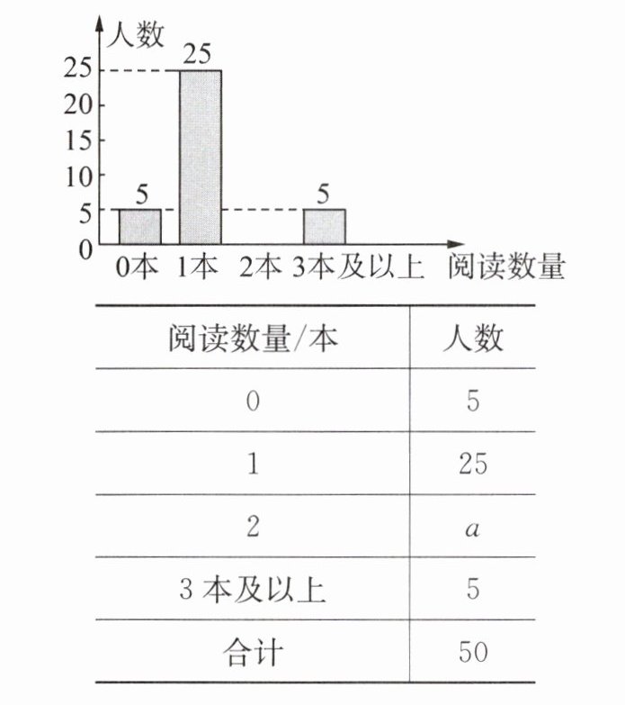 10. 为了解本校八年级学生的暑期课外阅读情况,数学兴趣小组随机抽取了 50 名学生进行问卷调查。对调查数据进行整理,得到下面两幅不完整的统计图表。