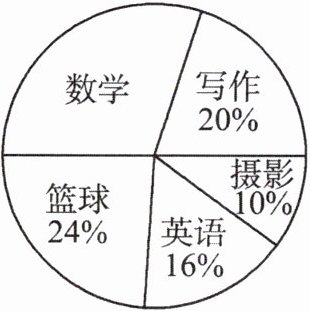 (3)参加数学兴趣小组的学生有50×30% = 15(人),参加篮球兴趣小组的学生有50×24% = 12(人),参加摄影兴趣小组的学生有50×10% = 5(人),12 + 5 - 15 = 2(人),所以参加篮球和摄影兴趣小组的学生比参加数学兴趣小组的学生多2人。
