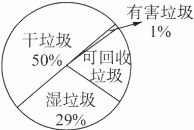 5. 垃圾分类,一般是指按一定规定或标准将垃圾分类投放、收集、运输和处理,从而转变成公共资源的一系列活动的总称。某市试点区域的垃圾收集情况如图所示,已知可回收垃圾一共收集 $60t$,且全市人口约为试点区域人口的 10 倍,那么估计全市可收集的湿垃圾总量为