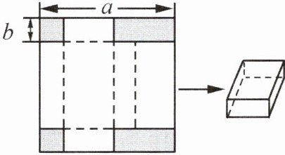 10. 在综合实践课上,同学们利用纸板制作纸盒。小明利用边长为24 cm的正方形纸板制作了一个有盖的长方体形纸盒。已知他的制作方法如下:如图,先在正方形纸板的四个角剪去两个边长为3 cm的小正方形和两个大小相同的小长方形(阴影部分),再沿虚线将剩余纸板折起来。这样就制作成一个有盖的长方体形纸盒。