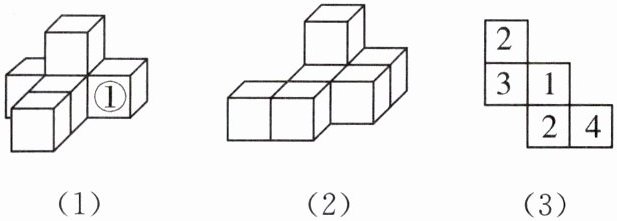 (1) 如图(1),这个几何体是由 6 个大小相同的小立方块摆成的。将小立方块①移走后,得到新的几何体。新几何体的形状图与原几何体的形状图相比,没有发生改变的形状图是从______看到的(填“正面”“左面”或“上面”)。