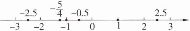 -2.5 < - $\frac{5}{4}$ < -1 < -0.5 < 1 < 2.5。