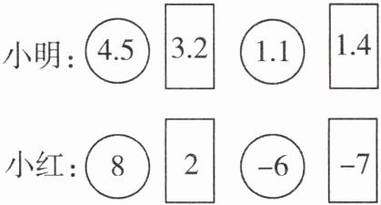 9. 小明和小红做游戏。规定:长方形表示加,圆形表示减,结果小者获胜。通过列式计算,判断小明和小红谁获胜。