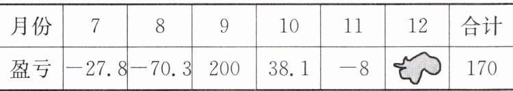 表中12月份的盈亏数被墨渍盖住了,请你算出12月份的盈亏数。