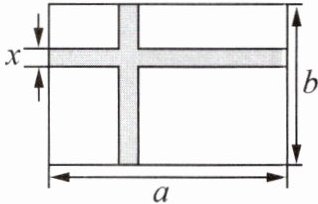 10. 如图,在长为$a\ m$、宽为$b\ m$的长方形土地上修两条同样宽的道路,余下的部分作为绿化地,道路宽$x\ m$。