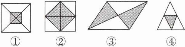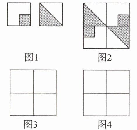4. 现有如图1所示的两种瓷砖,请从这两种瓷砖中各选2块,拼成一个新的正方形地板图案,使拼成的图案是轴对称图形或中心对称图形(如图2所示). 要求:分别在图3、图4中各设计一种与示例图不同的拼法,这两种拼法各不相同,且至少有一个既是轴对称图形又是中心对称图形.