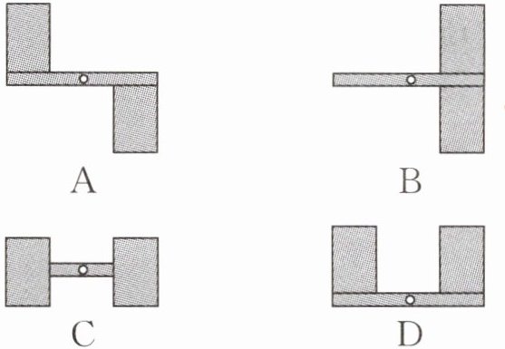 4. 风车应做成中心对称图形,并且不是轴对称图形,才能平稳旋转. 如图,现有一个矩形硬纸板(其中心有一个小孔)和两张全等的矩形薄纸片,将纸片粘到硬纸板上,做成一个能绕着小孔平稳旋转的风车,下列粘贴方法正确的是(