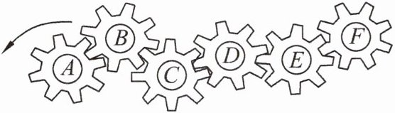 3. 如果齿轮A以逆时针方向旋转,则齿轮E旋转的方向是(