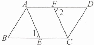 在△ABE和△CDF中,$\begin{cases}∠B= ∠D,\\∠1= ∠2,\\AB= CD,\end{cases} $