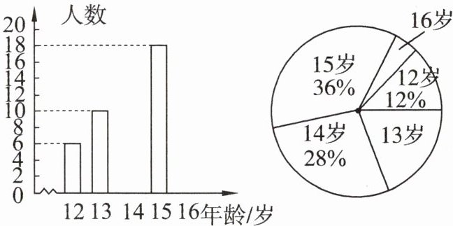 16岁的人数为$50 - (6 + 10 + 14 + 18) = 2$,