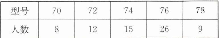 众数是76,说明此型号的衬衫需求最大,故76型号的衬衫产量要占第一位,此想法正确.