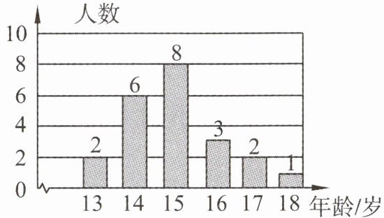 4. 某校男子足球队的年龄分布如图所示,根据图中信息可知,这些队员年龄的平均数是