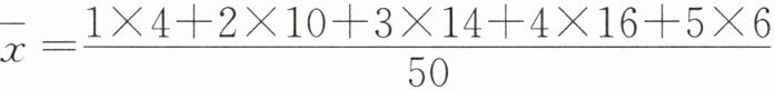 $\overline{x} = \frac{1×4 + 2×10 + 3×14 + 4×16 + 5×6}{50} = 3.2$,