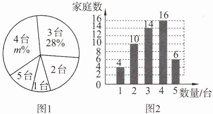 (1)根据家庭中拥有3台移动设备的人数及其所占的百分比可得调查的学生人数.将拥有4台移动设备的人数除以总人数可得m的值.