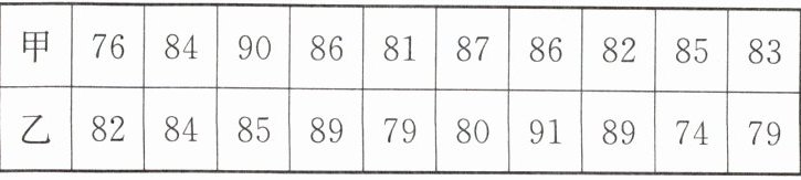 (2)$\overline{x}_{甲}= (76+84+…+83)÷10= 84$,