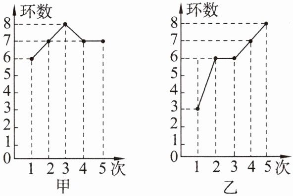 10. 甲、乙两人在相同的条件下各射击5次,每次的成绩如图所示.