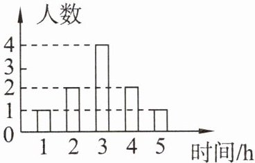 5. 某老师为了解学生周末学习时间的情况,在所教的班级中随机调查了 10 名学生,绘成如图所示的条形统计图,则这 10 名学生周末学习的平均时间是(
