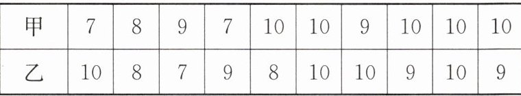 (2)乙队的平均成绩是$\frac{1}{10}(10×4+8×2+7+9×3)=9$,则方差是$\frac{1}{10}[4×(10-9)^{2}+2×(8-9)^{2}+(7-9)^{2}+3×(9-9)^{2}]=1$.