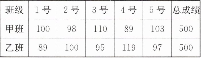 (2)甲班比赛数据的中位数是100,乙班比赛数据的中位数是97.