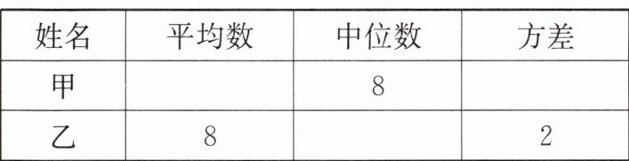甲:8,7,9,8,8;乙:9,6,10,8,7.
