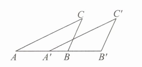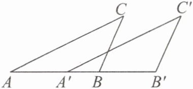 4. 如图,在$\triangle ABC$中,$AB= 3\mathrm{c}\mathrm{m}$.将$\triangle ABC沿着AB方向平移得到\triangle A'B'C'$.已知$A'B= 1\mathrm{c}\mathrm{m}$,则$CC'= $______$\mathrm{c}\mathrm{m}$.