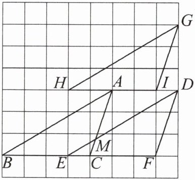 (2)由平移的性质可得,与$AC既平行又相等的线段有DF$,$GI$;与$\angle BAC相等的角是\angle EDF$,$\angle HGI$,$\angle AMD$,$\angle CME$.